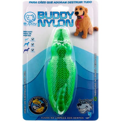 Produzido com um composto de Nylon Especial exclusivo da Buddy Toys, o Pneu é um brinquedo para cachorro durável, que ajuda a combater o tártaro canino, e o mau hálito.