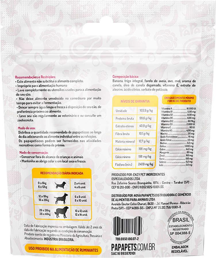 O Petisco Papapets Cenoura com Aveia para Cães é um alimento específico para cães de todos os portes, indicado para ser oferecido após as refeições ou como demonstração de carinho e adestramento. Também pode ser uma importante ferramenta para melhorar e preservar a saúde canina, pois contém nutrientes diversos e saudável em suas propriedades. Este produto não substitui o alimento completo.
